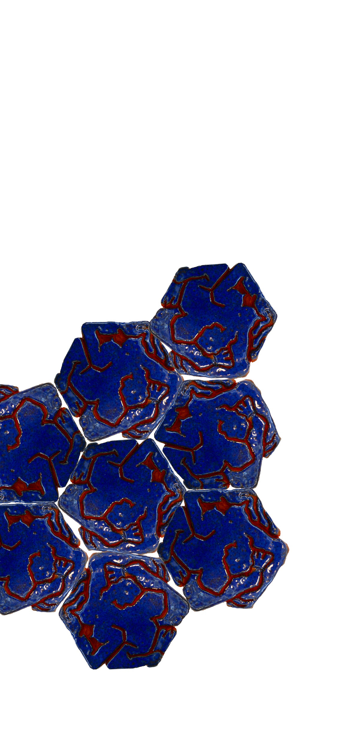 I started with sketching and using the esher paper cutting technique, then I made plaster malls and pressed red clay into those.